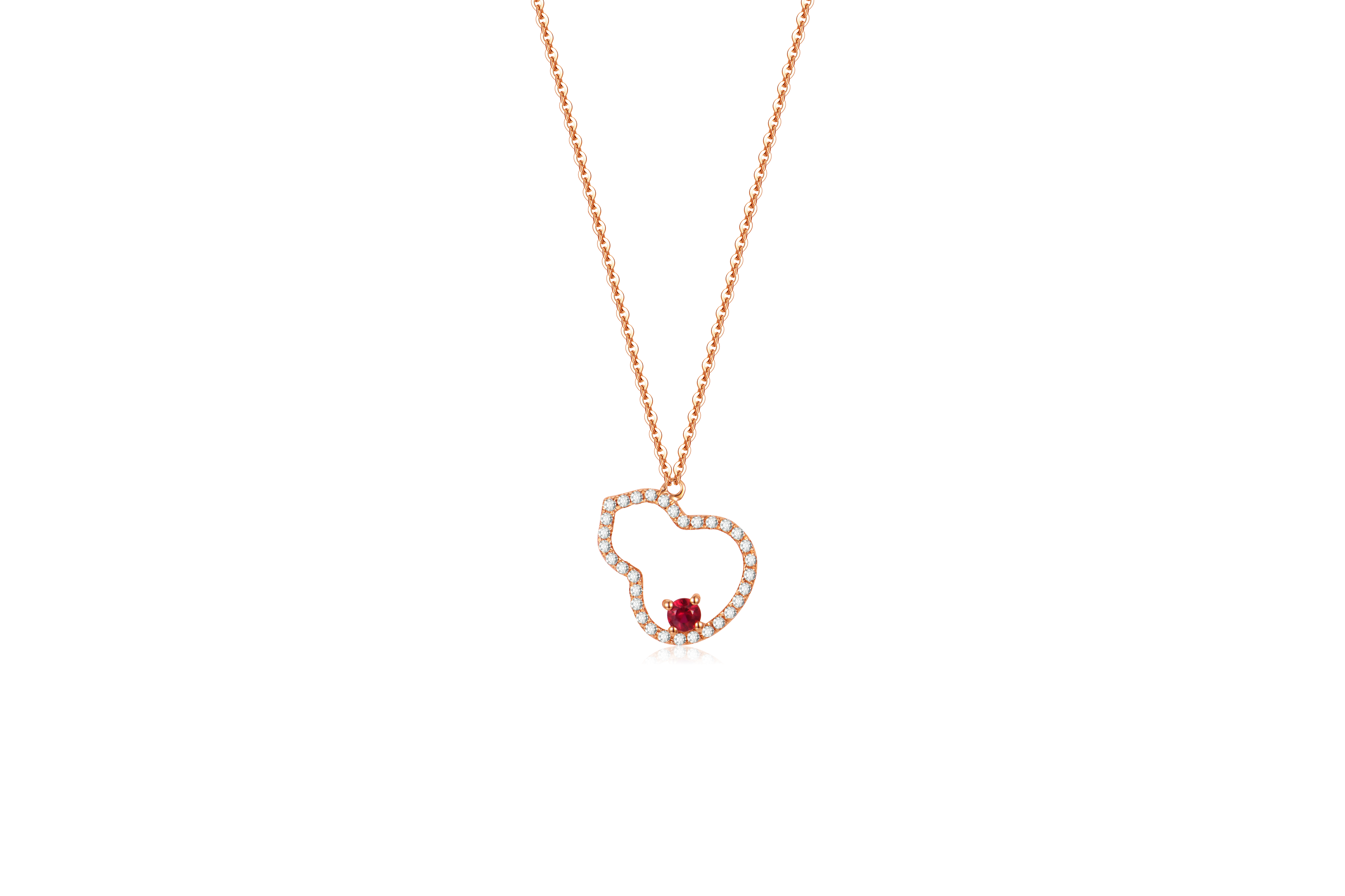 IV. Design Concept: "Budding, blossoming, and bearing fruit in the heart" The design encapsulates the core of love's growth, "having you in my heart," symbolizing the complete journey of love from its quiet budding to its fulfilling fruition. Natural rubies, like the burning passion in one's heart, are rich and vibrant; the diamond clusters, like the delicate beauty in love, are dazzling and sparkling. The robust texture of 18K red gold carries this gradual and increasingly mellow emotion, while the pendant's rounded lines and exquisite size subtly reflect the warmth and preciousness of love, making the necklace a unique token witnessing love from its inception to its fruition.