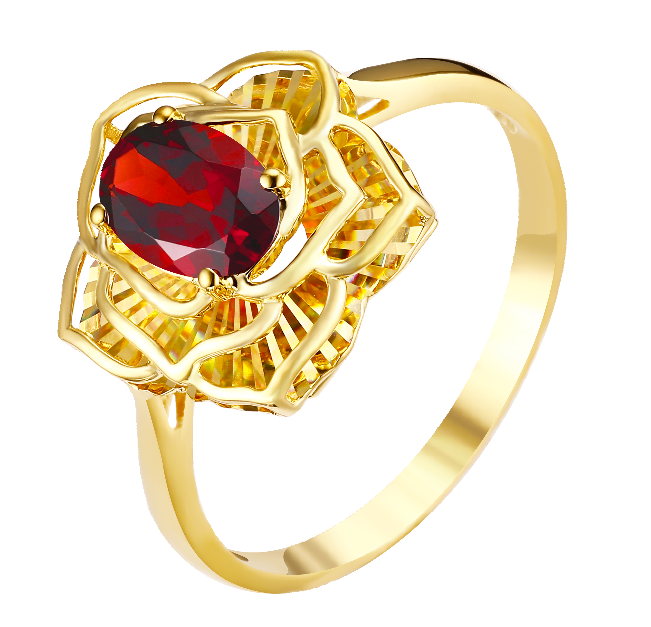 Inspired by the "Heart's Delight" collection, this 18K gold garnet rose ring for women features a blooming rose as its central design, symbolizing romance, passion, and independence.
